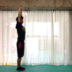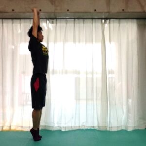 ※頭が天井に引っ張られていくイメージで、背伸びをしましょう